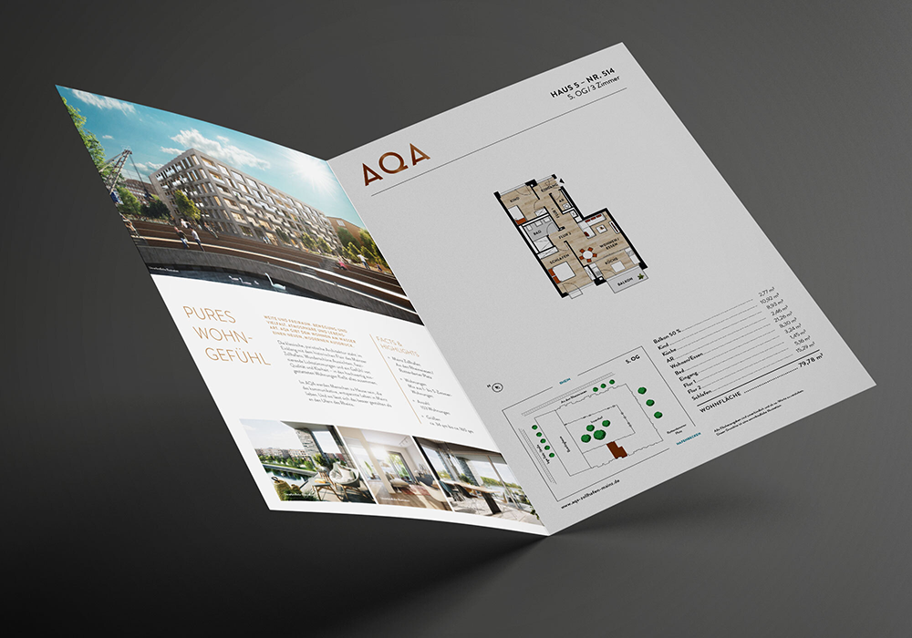 Weite und Freiraum. Bewegung und Vielfalt. Atmosphäre und Lebensart. Das Neubauprojekt AQA im Zollhafen in Mainz gibt dem Wohnen am Wasser einen neuen, modernen Auftritt. 103 attraktive Appartements bilden ein urbanes Wohnquartier von besonderem Format. Eine Heimat am Hafen - maßgeschneidert für moderne Ansprüche und individuelle Lebenskonzepte. Neben dem kurzen und prägnanten Namen und Leitbild entwickelte STERN sämtliche Vertriebsunterlagen und die Website in einem frischen, jungen und trotzdem hochwertigen Look. Der Vertrieb ist gerade rasant gestartet. Die Fertigstellung ist für 2024 geplant.