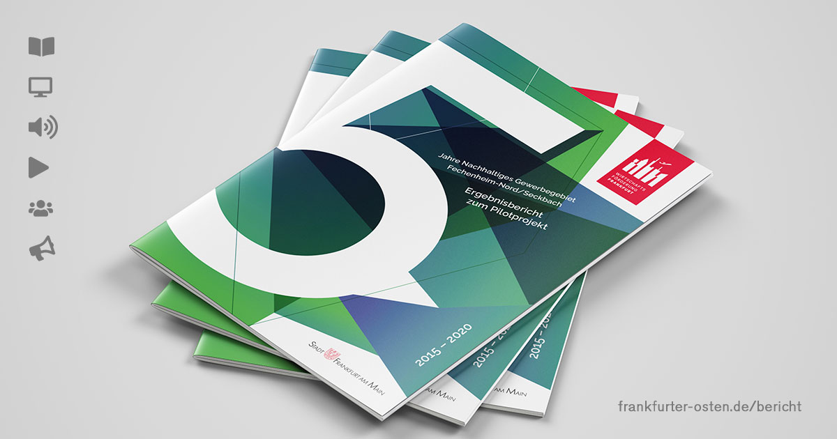 360°-Kommunikation wie wir sie lieben. Ein superspannendes Projekt haben wir jetzt ganz frisch für die Wirtschaftsförderung Frankfurt GmbH umgesetzt, und zwar speziell für das Nachhaltige Gewerbegebiet, das wir mit Website-Services bereits seit 2018 betreuen. Worum es geht? Um die kanalübergreifende und innovative Aufbereitung eines Ergebnisberichts zum fünfjährigen Bestehen des bundesweit einzigartigen Pilotprojekts. Denn wir haben den Ergebnisbericht nicht nur klassisch als magazinartiges Print-Produkt auf 68 Seiten hergestellt, sondern auch als Digital- und Audio-Version zum Hören. Zusätzlich waren wir bei der Vorbereitung einer kontaktlosen Pressekonferenz mit Frankfurts Wirtschaftsdezernent Markus Frank inkl. Präsentation und Medienarbeit aktiv – und sind in den nächsten Monaten auch für die Social-Media-Betreuung des Projekts mit an Bord. Den Bericht lesen, erleben und hören kann man hier: