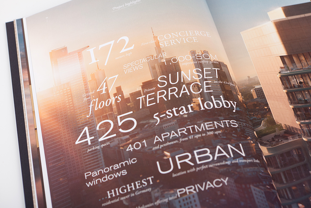 Der Name ist Programm: Mitten in Frankfurt entsteht mit 172 Metern und 47 Geschossen Deutschlands höchster Wohnturm, der Grand Tower. Bis Ende 2018 soll der spektakuläre Bau fertig gestellt sein. Die Agentur wurde nach einem Agentur-Pitch mit der Entwicklung der Vermarktungsunterlagen beauftragt. Unter anderem haben der Name Grand Tower und der Claim „Living the high life“ den Bauherrn gsp Städtebau überzeugt. Wir freuen uns sehr über dieses spannende Projekt und wollen mit dem Grand Tower noch hoch hinaus!