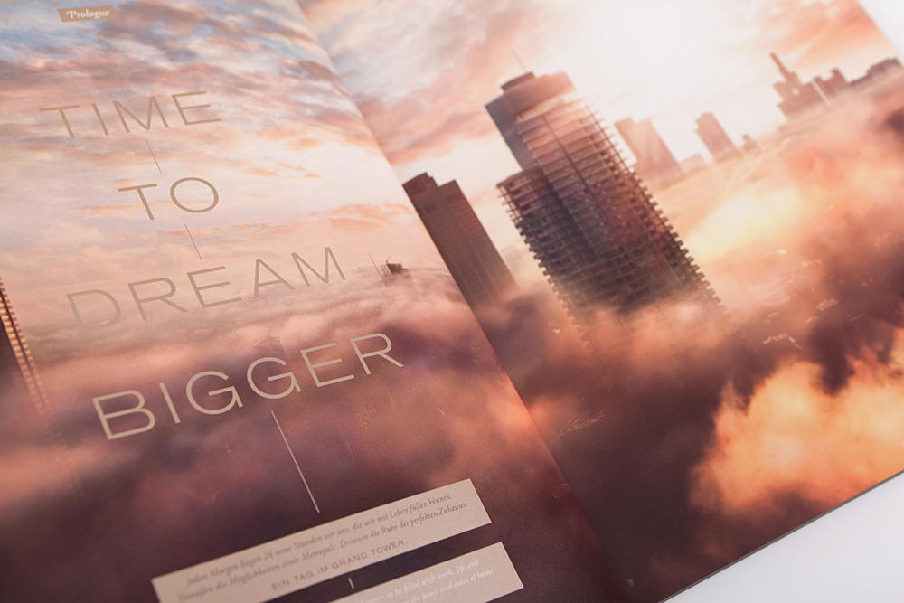 Februar 2017 – GRAND TOWER, GREAT BOOK! Große Ehre für die Agentur Stern und ihre Kunden gsp Städtebau und Zabel Property: Mit dem Imagebook wurde nun eines der Marketinghighlights, das die Agentur für den GRAND TOWER entwickelt hat, mit dem renommierten iF Design Award 2017 ausgezeichnet. Stern erhält den Preis in der Disziplin Communication, Kategorie Corporate Identity Branding. Das 72-seitige Imagebuch illustriert mit großflächigen, spektakulären Visualisierungen und spannender Gestaltung 24 Stunden im Leben der künftigen Bewohner – vom Sonnenaufgang über der Stadt bis zum Sundowner auf der Sunset-Terrasse im 43. Geschoss.