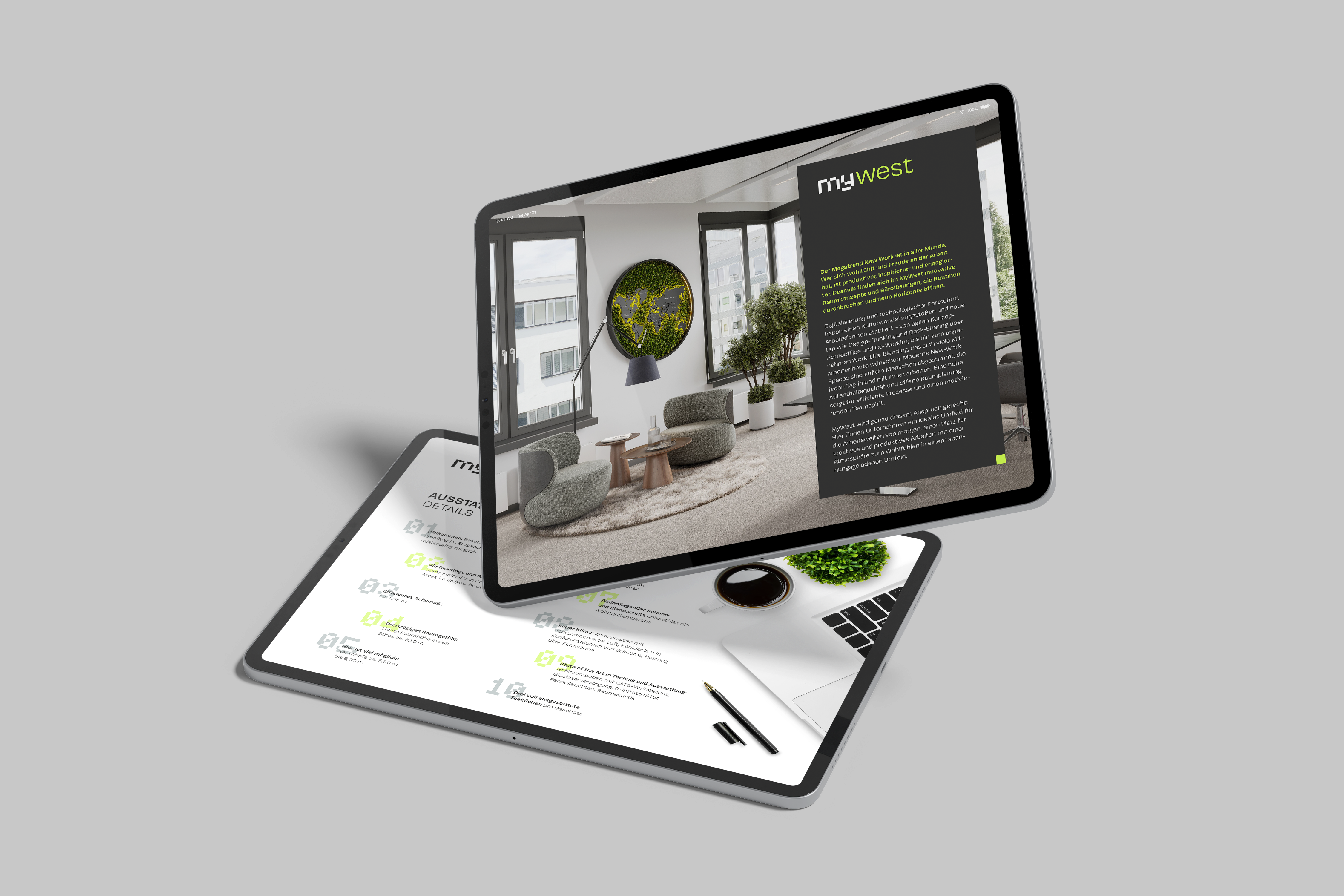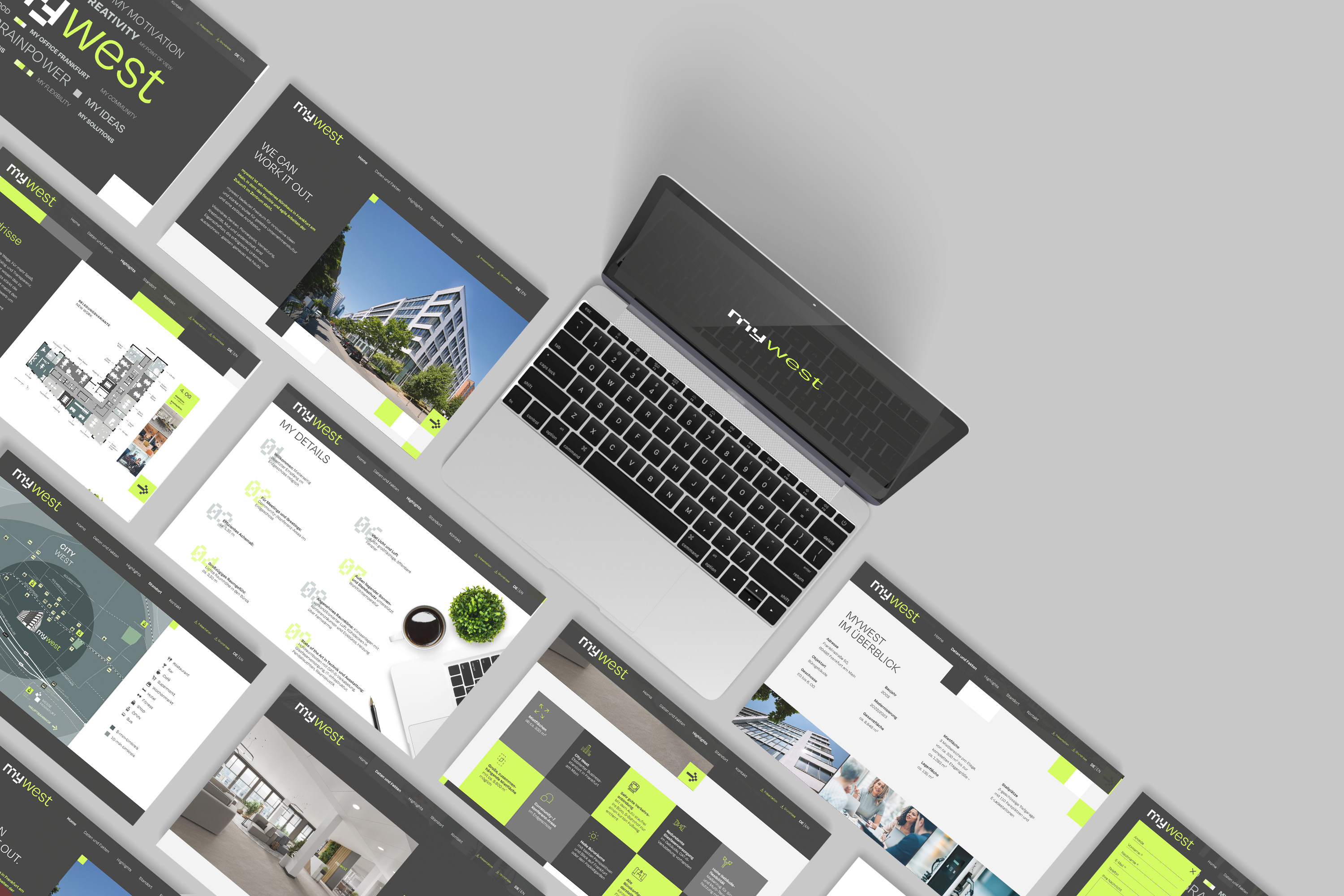 mywest ist ein modernes Bürohaus in der Franklinstraße in der Frankfurter City-West, in dem das flexible und agile Arbeiten der Zukunft im Zentrum der Vermarktung steht. Zusätzlich zum Projektnamen, der Leitidee, einer schlanken Website und der Außenwerbung vor Ort entwickelte STERN gemeinsam mit dem Vermarktungsteam eine spannende digitale Präsentation. Wir freuen uns darauf, auch die weitere Entwicklung dieses spannenden Projekts zu begleite