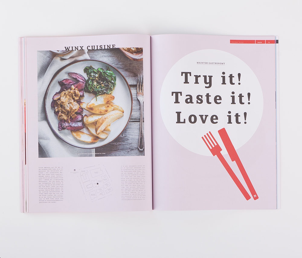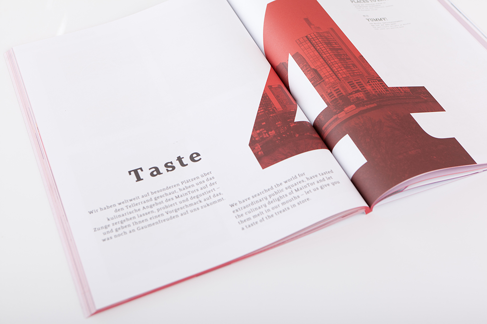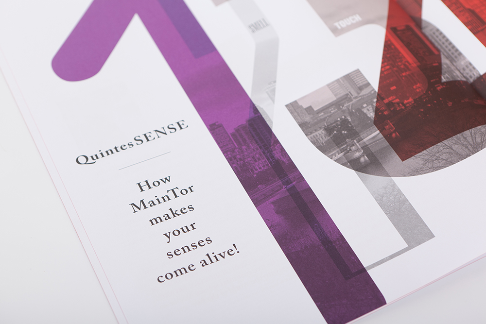 Wie setzt man eine Magazinserie fort, die bereits alle wichtigen Designpreise des Landes gewonnen hat? Man konzentriert sich auf die Quintes SENSE – das Leitthema der fünften Ausgabe des Magazins. Schon heute wohnen und arbeiten rund 1.500 Menschen im MainTor und erfüllen das Ensemble jeden Tag mit Leben. Das aktuelle Magazin THE RIVERSIDE befasst sich mit den fünf essenziellen Sinnen, mit denen wir alle die Welt erleben: See. Smell. Touch. Taste. Hear. Herausgekommen ist ein neues Meisterwerk: mit fantastischen Fotos, coolen Interviews, den neuesten Trends, echten Insidertipps und gestaltet mit Liebe fürs kleinste Detail. Lassen Sie sich entführen in die Welt des MainTor Quartiers. Die Premiere wurde auf der Expo Real 2016 gefeiert.