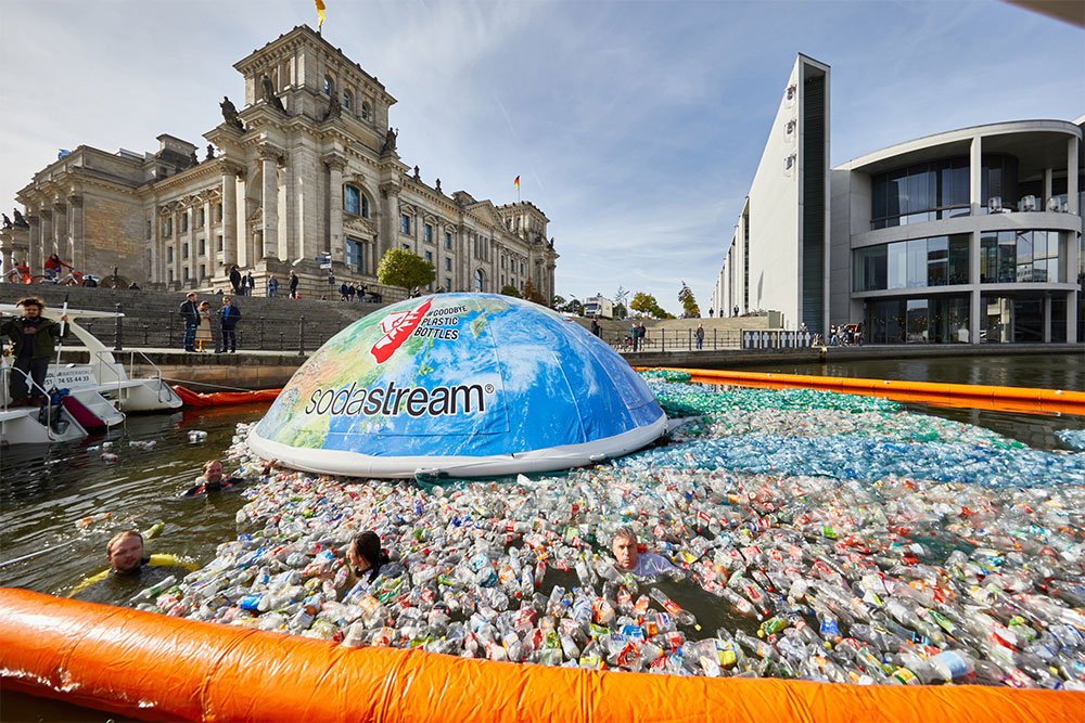 STERN STEUERT SODASTREAM-XXL-DEMO-AKTION GEGEN PLASTIK IN BERLIN