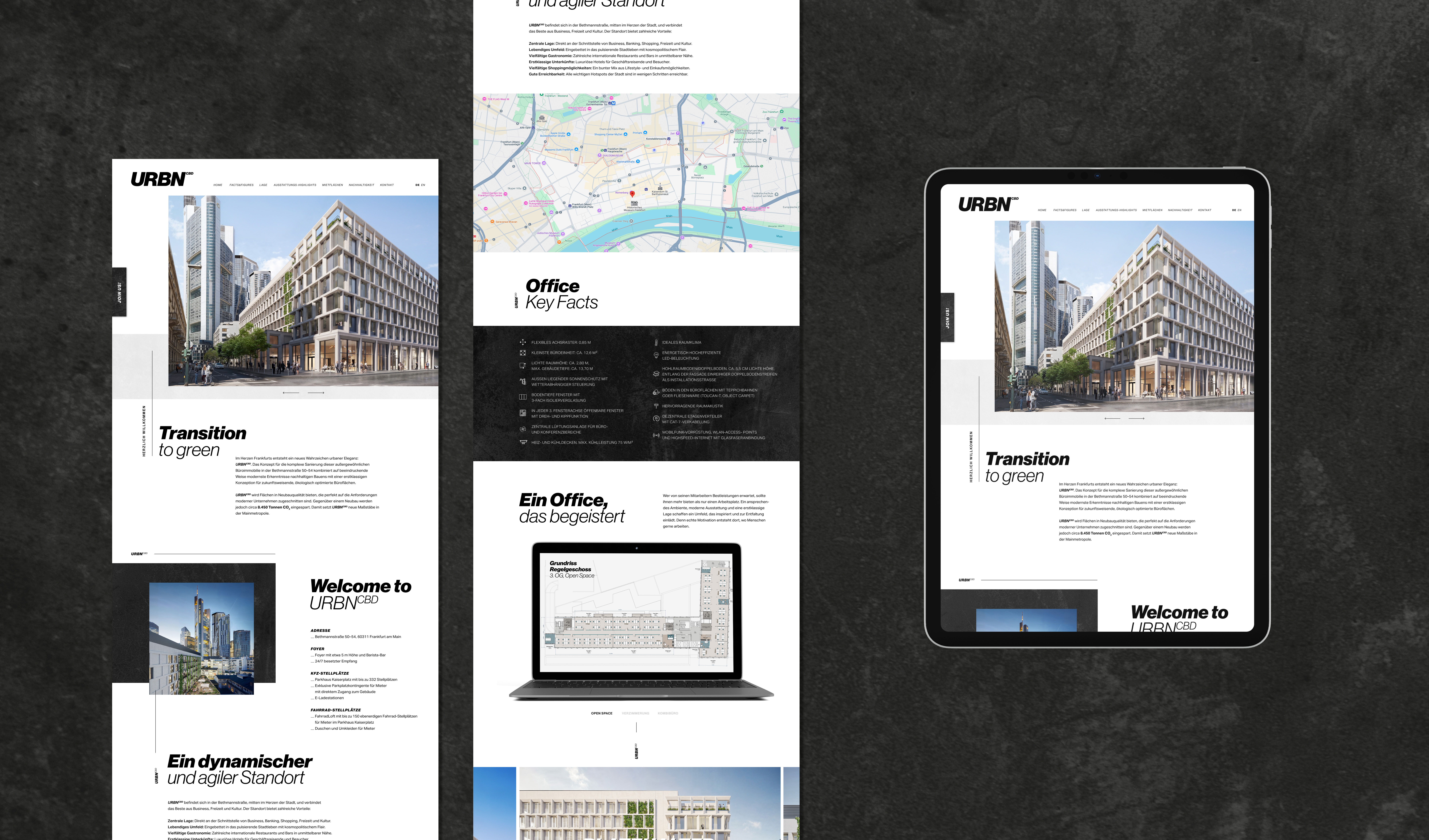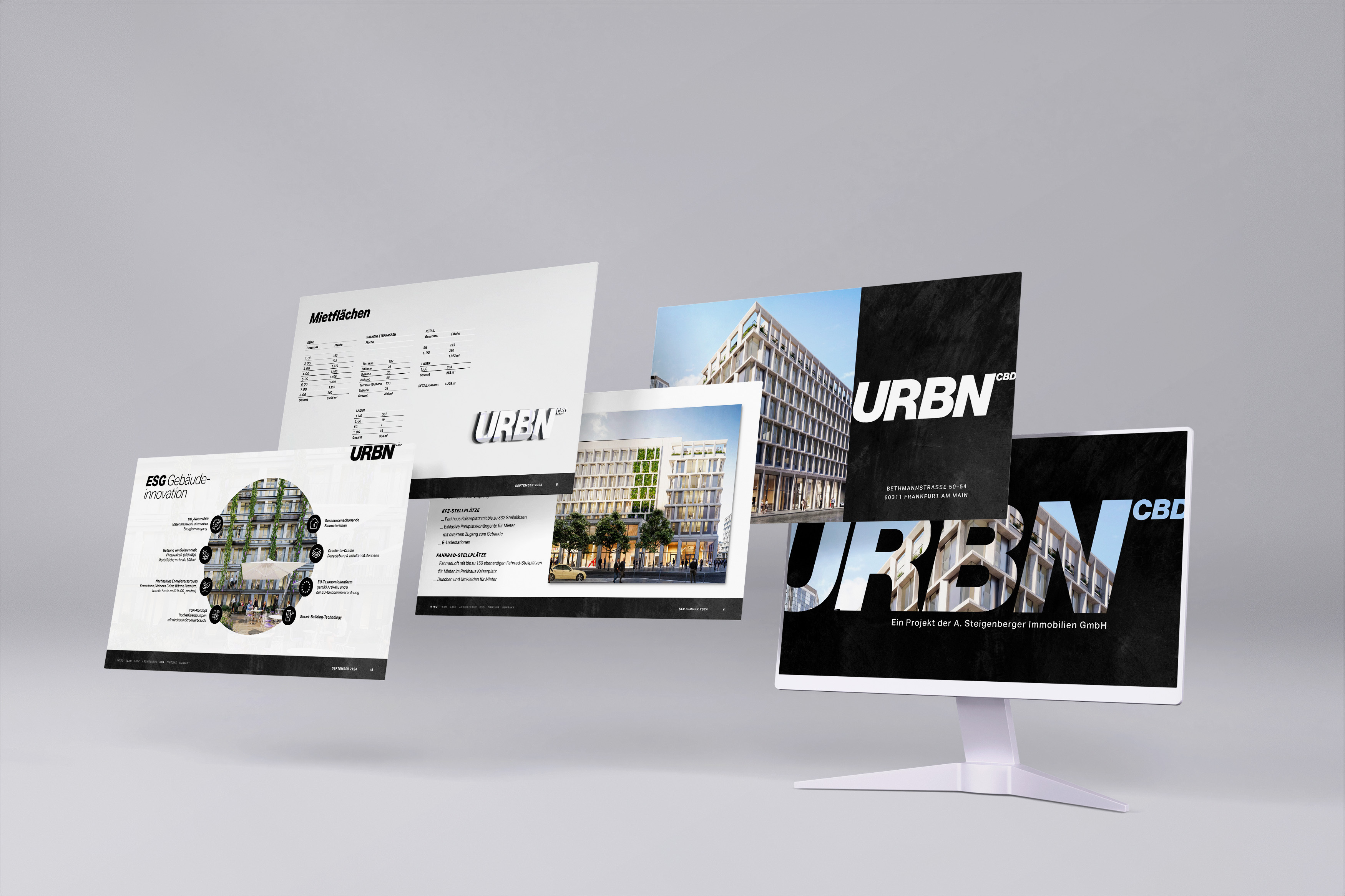 Im Herzen Frankfurts entsteht ein neues Wahrzeichen urbaner Eleganz: URBN CBD. Das Konzept für die komplexe Sanierung dieser außergewöhnlichen Büroimmobilie der Steigenberger Immobilien GmbH in der Bethmannstraße kombiniert modernste Erkenntnisse nachhaltigen Bauens mit einer erstklassigen Konzeption für zukunftsweisende und ökologisch optimierte Büroflächen. URBN CBD wird Flächen in Neubauqualität bieten, gegenüber einem Neubau werden aber circa 8.450 Tonnen CO2 eingespart. Damit setzt das Gebäude neue Maßstäbe in der Mainmetropole – nicht nur durch die Einsparung grauer Energie, sondern auch durch den konsequenten Einsatz grüner Energie. Lebendige Dächer und eine begrünte Fassade verwandeln URBN CBD in ein nachhaltiges Vorzeigeprojekt. STERN entwickelte den Namen, das Corporate Design, steuerte die Entwicklung der Architekturvisualisierungen, gestaltete eine aufwendige Präsentation und die Website. To be continued..