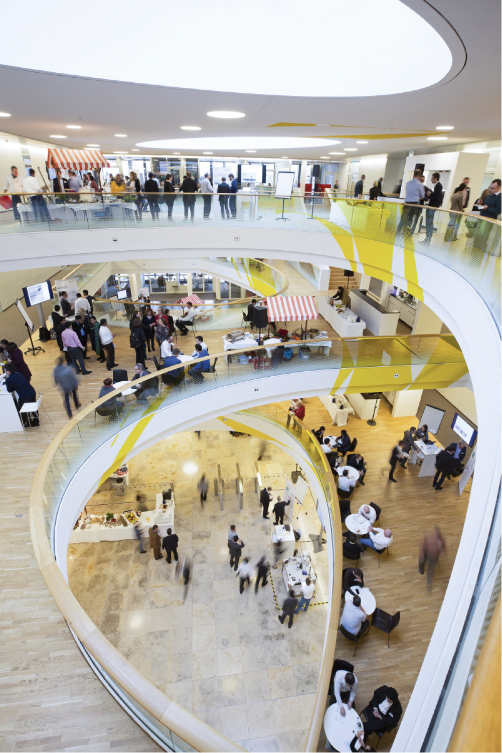 Ein anderes Event, das wir schon mehrfach ausgerichtet haben, ist das mehrtägige Meeting der Mitarbeiterinnen und Mitarbeiter aus dem Bereich Group Technology & Innovation. Der internationalen Zusammensetzung entsprechend fand das letzte Mal unter anderem im Hilton Hotel am Frankfurter Flughafen statt. Dank ihres großen Erfolgs wurden auch hier wieder die von uns speziell für die Veranstaltung entwickelten Formate der interaktiven Talkshow und dem "Marktplatz der Innovationen" eingesetzt.
