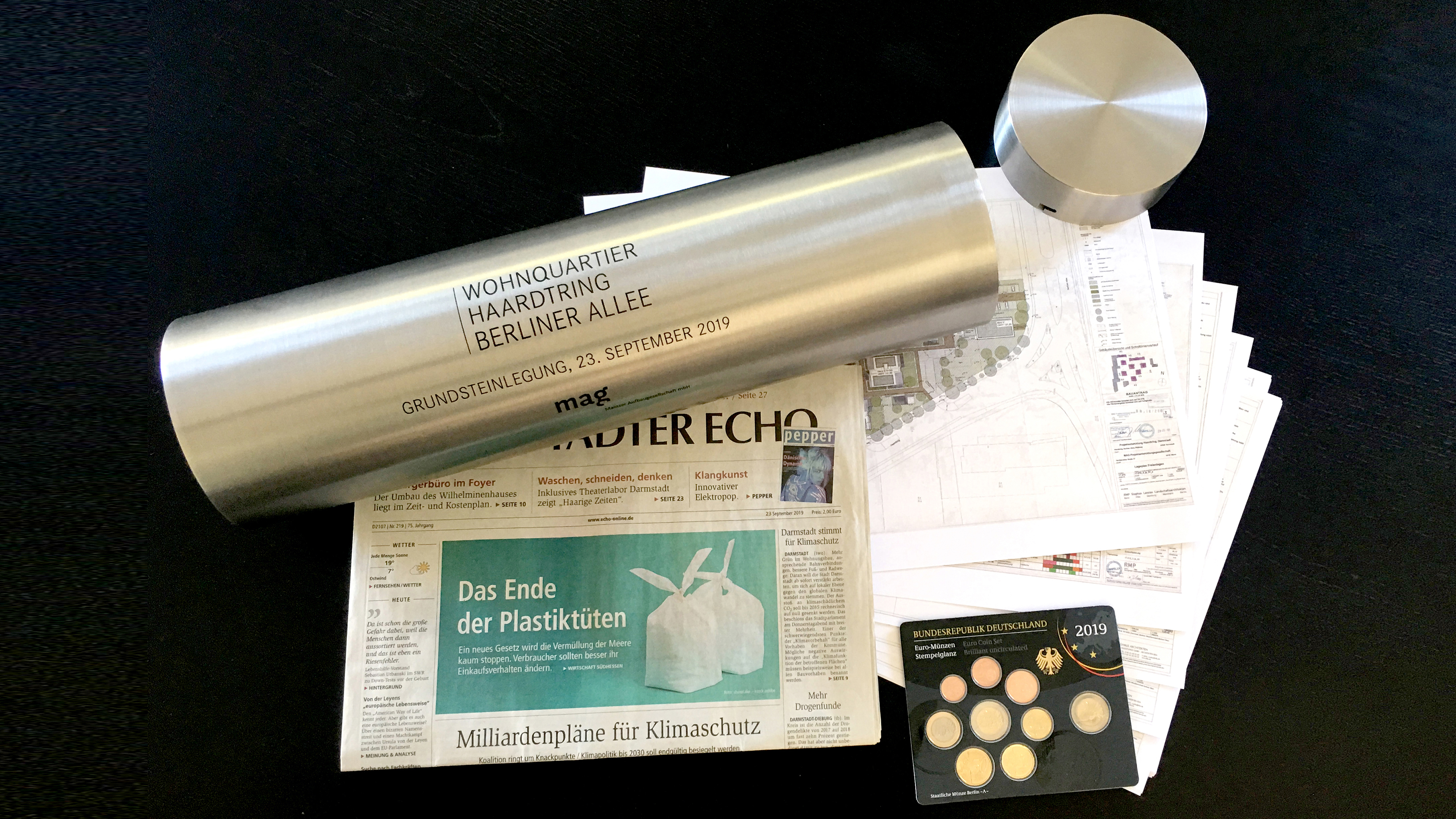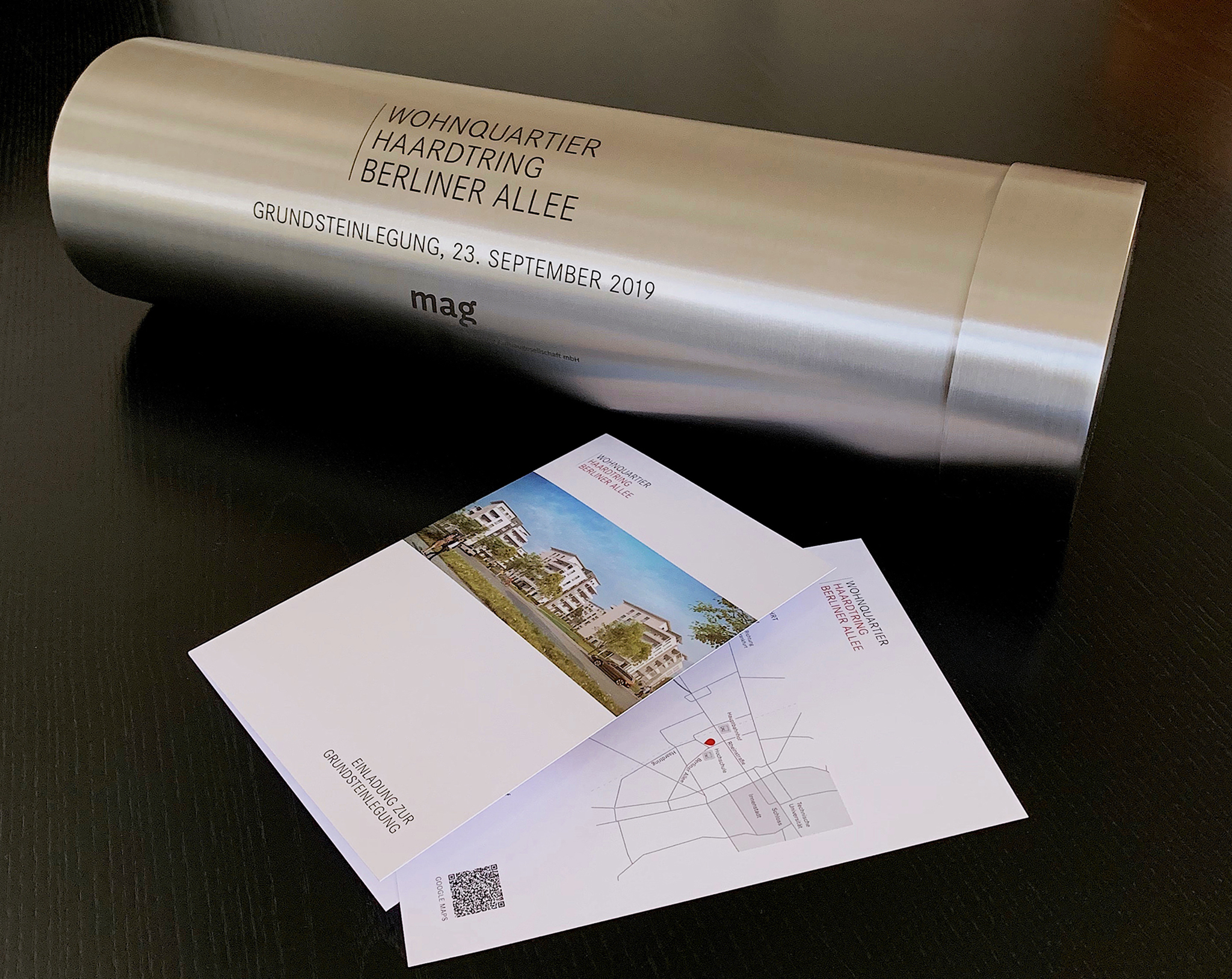 Pünktlich zum Eventbeginn um 10 Uhr morgens klarte der Himmel über Darmstadt auf. Die Grundsteinlegung des Wohn- und Gewerbekomplexes Haardtring in der Darmstädter Innenstadt war ein besonderer Moment – sowohl für unseren Kunden mag Mainzer Aufbaugesellschaft als auch für Darmstadt selbst. Mit knapp 700 Wohneinheiten stellt das 11.500 Quadratmeter große Areal eines der aktuell größten Wohnbauprojekte der Stadt dar. Bei der Vorbereitung dieses besonderen Augenblicks durften wir tatkräftig unterstützen: von der Eventeinladung, über die gesamte Eventorganisation und –ausstattung bis hin zur Gestaltung der Zeitkapsel.