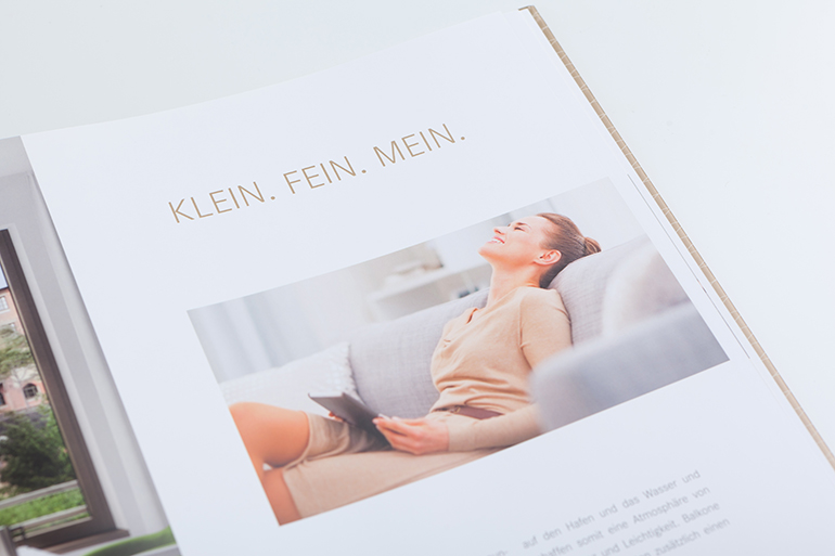 Neben dem Corporate Design entwickelte Stern die Vertriebsunterlagen, wie z. B. die hochwertige Imagebroschüre: Der goldene Umschlag greift hierbei Farbe und Struktur der späteren Fassade des Gebäudes auf. 40 Innenseiten, mit vielen Informationen rund um das geplante Projekt, führen durch das Herzstück des neuen Quartiers. Hier werden urbane Lebensqualität und ein neuer Mainzer Lifestyle erlebbar.
