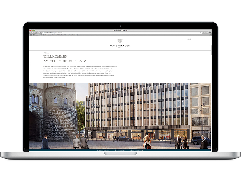 Von Hamburg bis München – für unseren Kunden MOMENI haben wir bereits bundesweit erfolgreiche Marketingprojekte realisiert. Jetzt kommt ein Neues hinzu. Aktuell setzen wir die komplette Vermarktungskommunikation für das Büro- und Geschäftshaus WALLARKADEN am historisch bedeutsamen Rudolfplatz im Zentrum Kölns um, vom Corporate Design über Website, Movie und Imagebook bis hin zur Baustellenkommunikation.